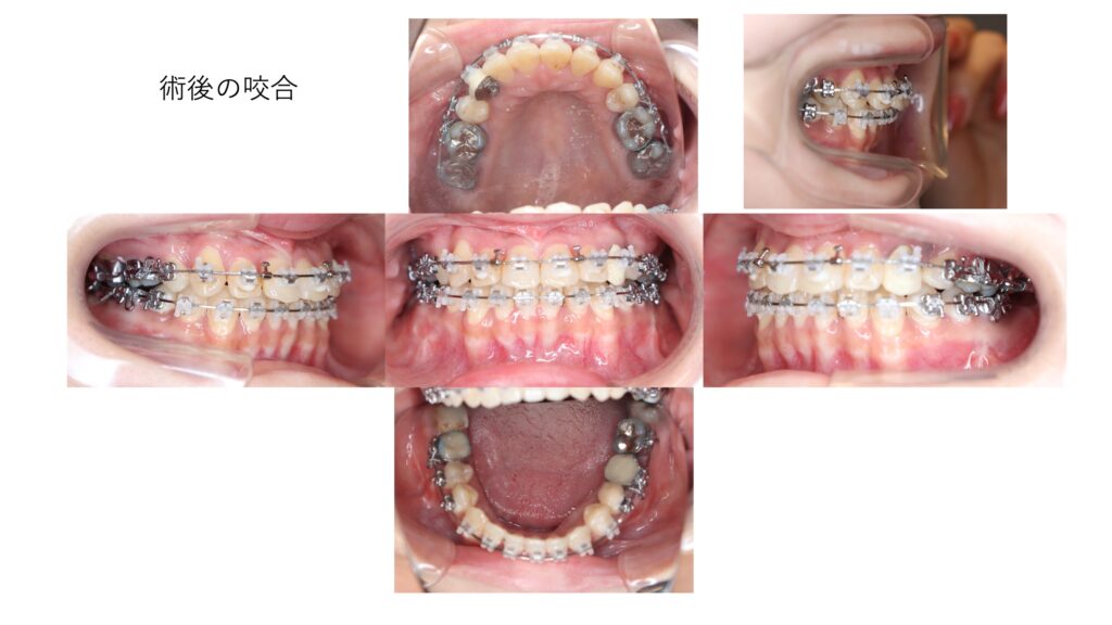 横から見ると、術前は下あごが前に出ており、口元が突出して見えていました。手術後は、下あごが適切な位置に下がり、口元からあご先にかけてのラインが自然になっています。横顔全体のバランスが整い、やわらかい印象になりました。