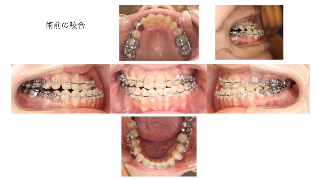 側面像と斜位像では、下あごが前に出ている「下顎前突」の状態が明らかです。また正面像では、あごの位置やフェイスラインに左右差があり、顔全体にわずかな非対称がみられます。